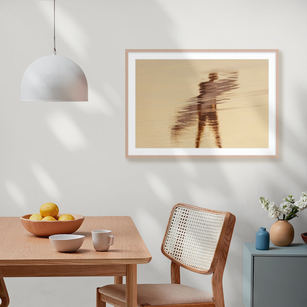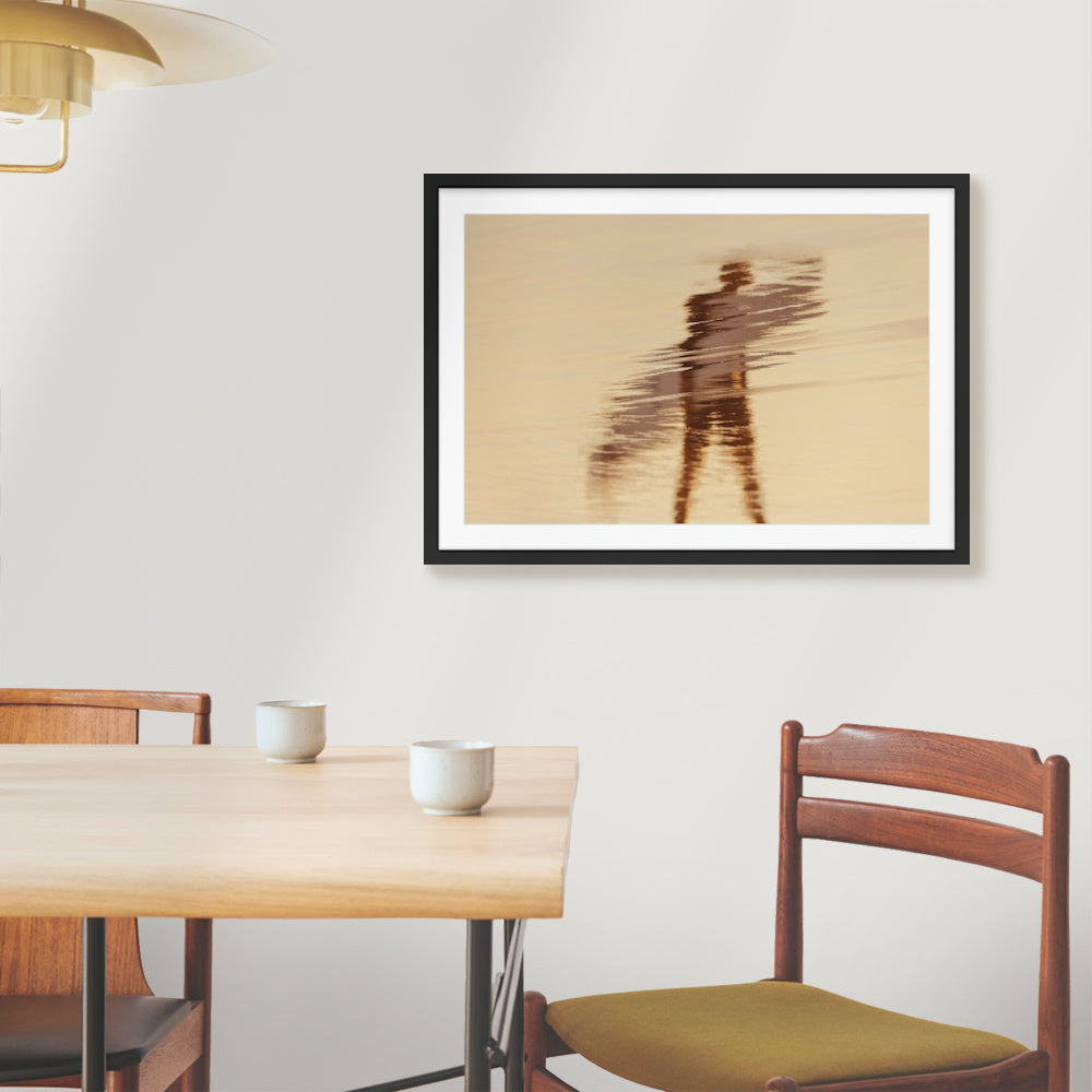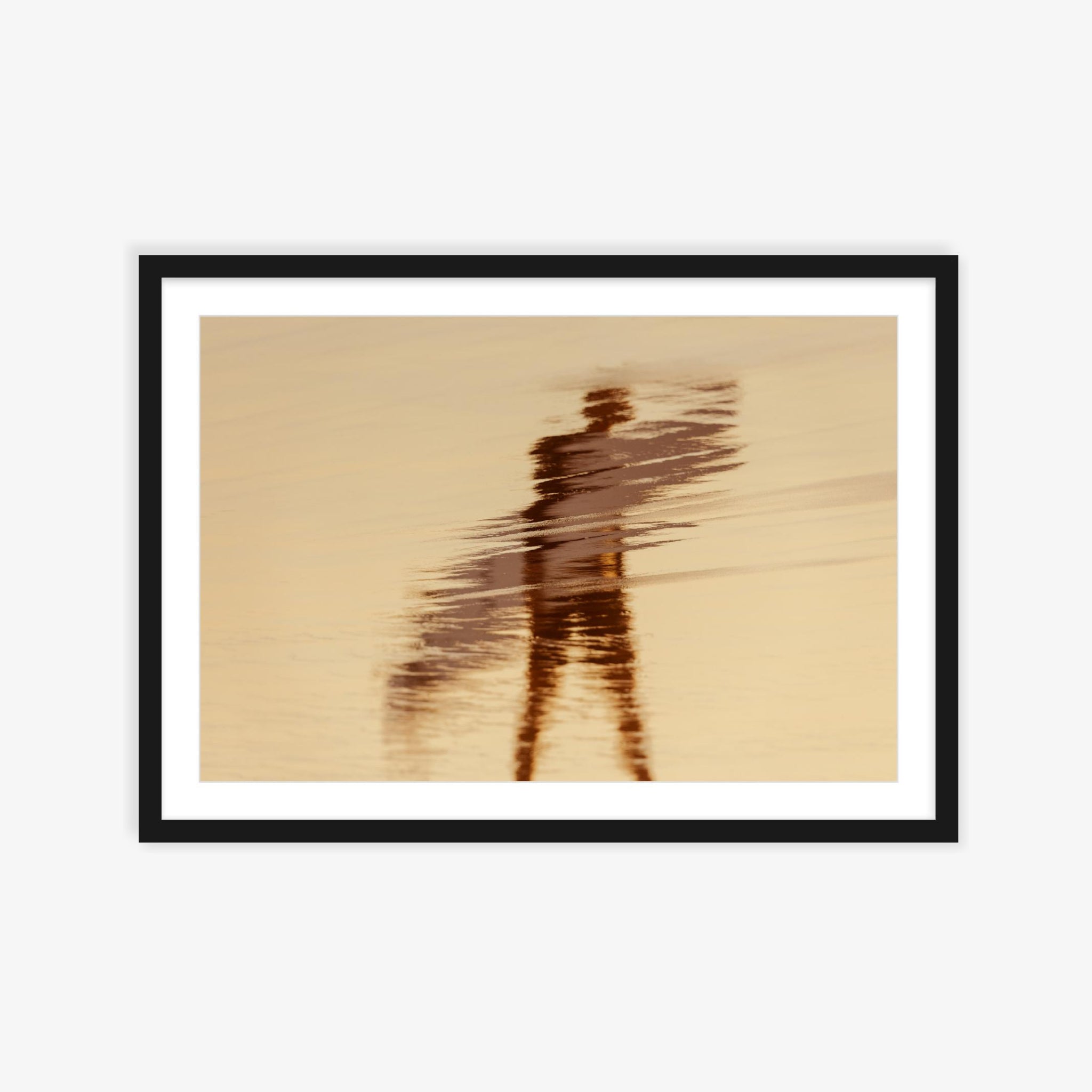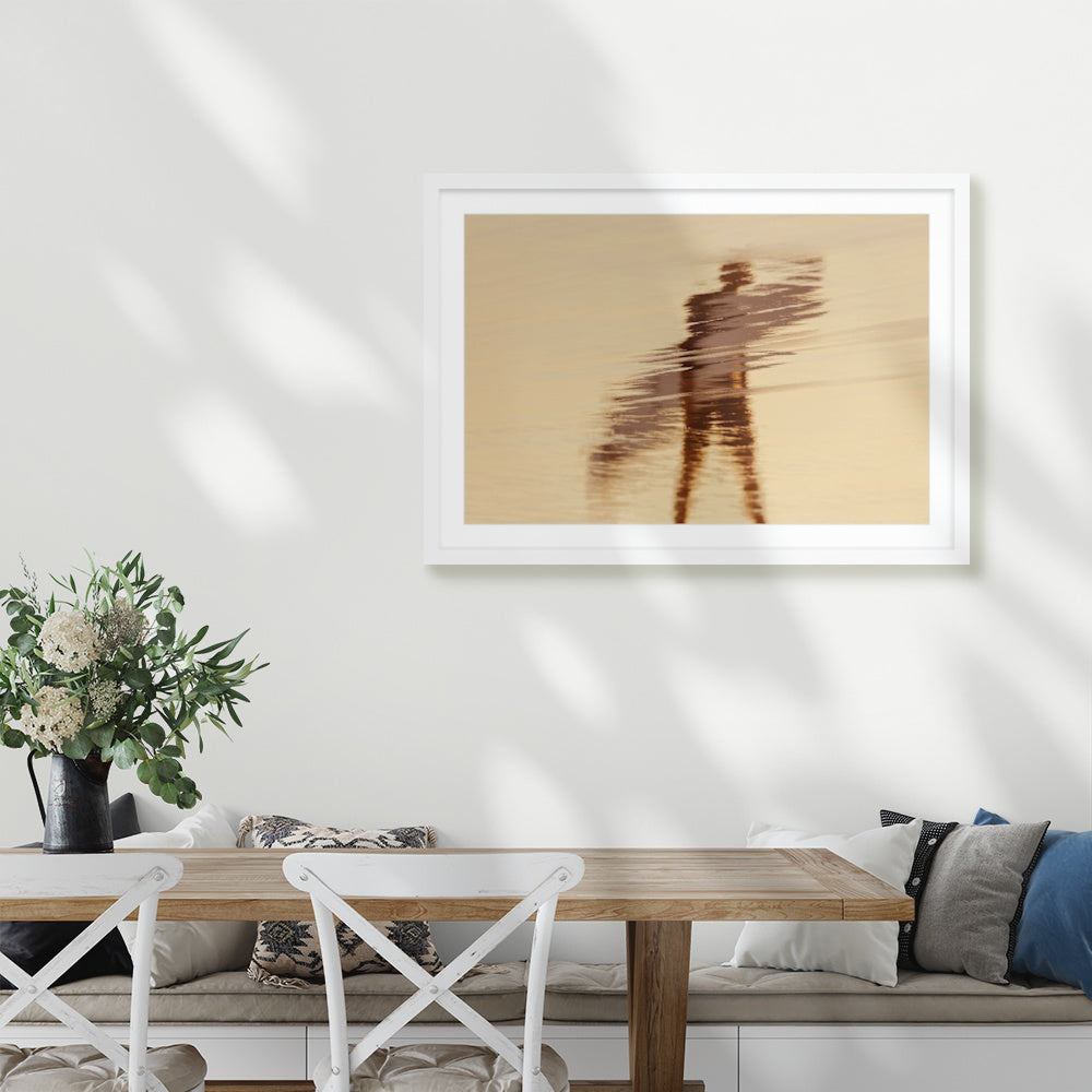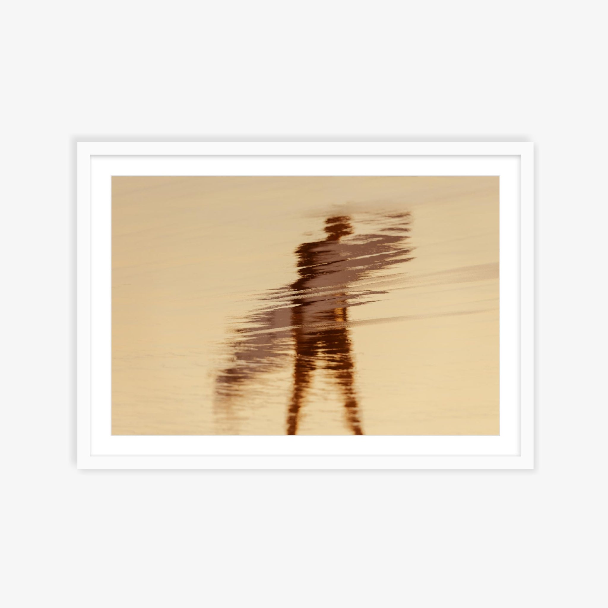 Displayed in a deep white frame; there is a gap between print and glass/perspex.